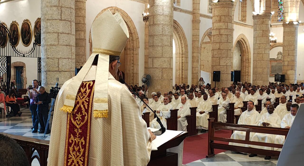 Santo Domingo. – En el corazón de la Semana Santa, la Arquidiócesis de Santo Domingo celebró este Jueves Santo la solemne Misa Crismal en la Catedral Primada de América, presidida por S.E.R. Mons. Carlos Tomás Morel Diplán, Arzobispo Coadjutor, junto a los obispos auxiliares y el clero arquidiocesano.