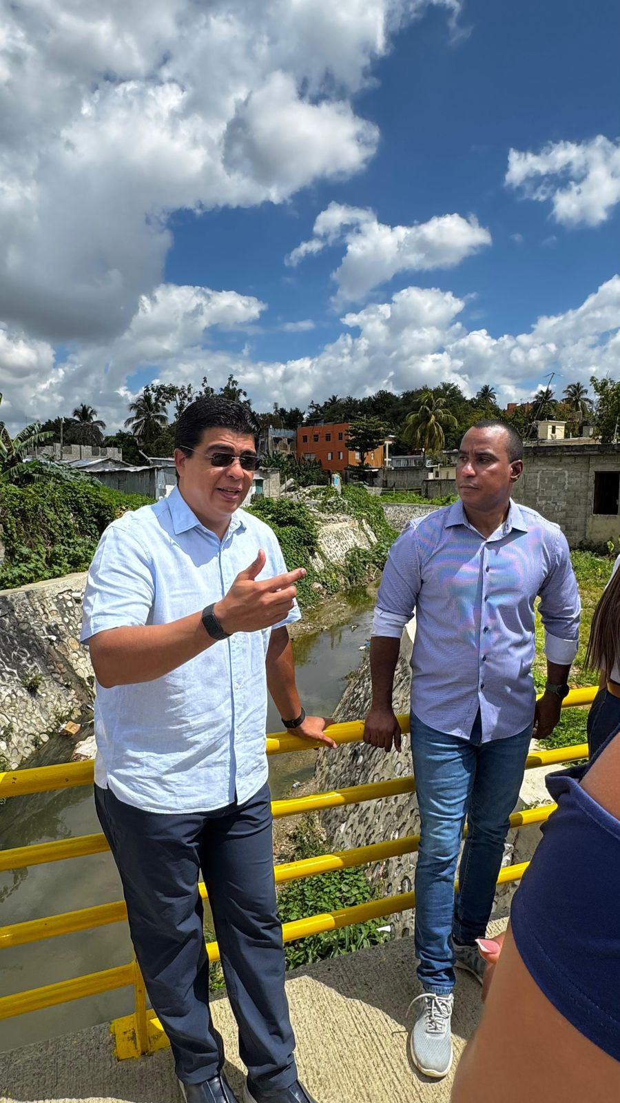 Santo Domingo.– El director de la Corporación del Acueducto y Alcantarillado de Santo Domingo (CAASD), ingeniero Fellito Suberví, inspeccionó este miércoles los trabajos de saneamiento que realiza la institución en un tramo de 300 metros lineales en la cañada Guajimía, donde se colocó un bypass y una malla en el área del puente para evitar inundaciones y taponamiento por residuos y derechos sólidos.