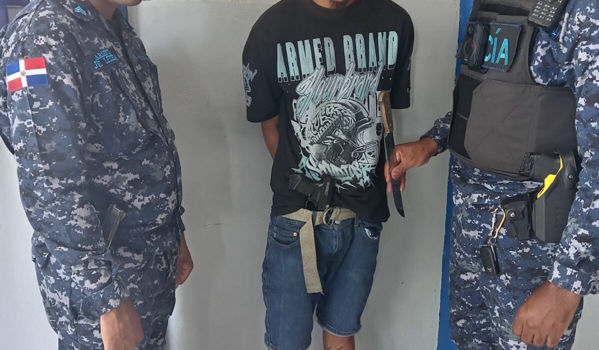 De igual forma, durante labores de patrullaje preventivo, agentes policiales detuvieron a un individuo identificado como David Polanco, a quien se le ocupó una pistola presumiblemente de fogueo, un cartucho y un arma blanca tipo cuchillo.