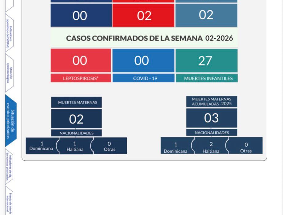 Santo Domingo – El Ministerio de Salud Pública (MSP), destacó este jueves que en el país la incidencia de los casos de malaria se ha reducido en un 86 por ciento, con respecto al año 2025. Otros indicadores de enfermedades y eventos priorizados muestran reducción significativa al presentar el reporte epidemiológico de la semana SE-02.